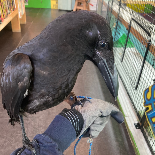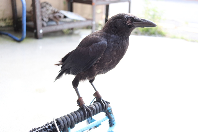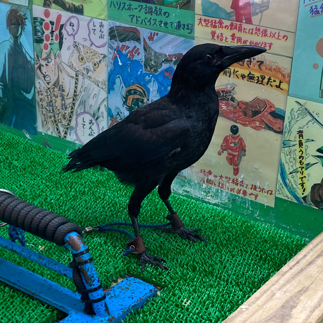 ②有害鳥獣駆除で捕獲されたハシボソガラスを、当店が引き取り飼育を始めました。