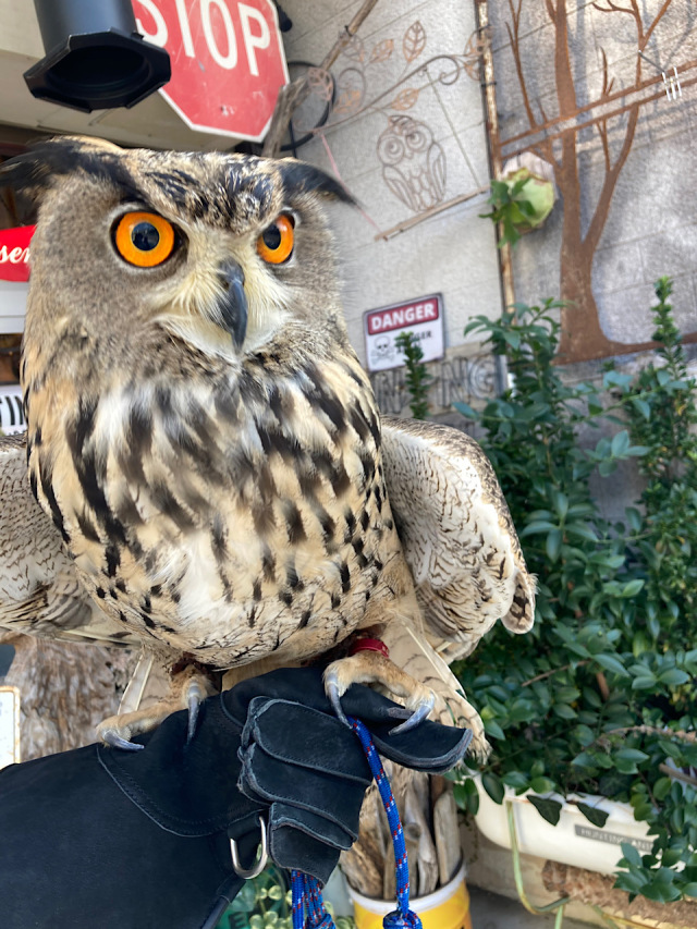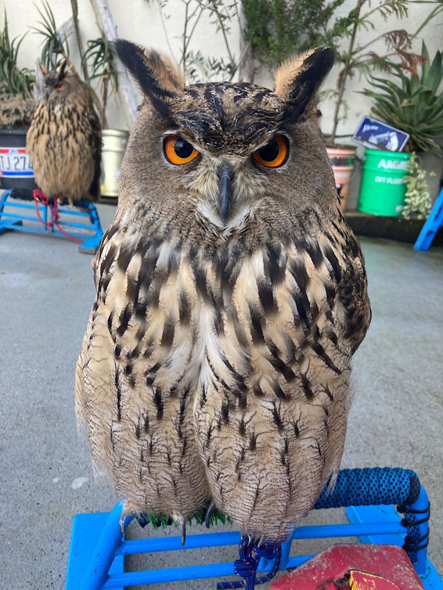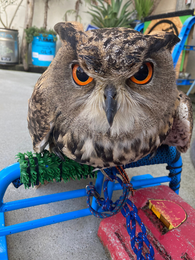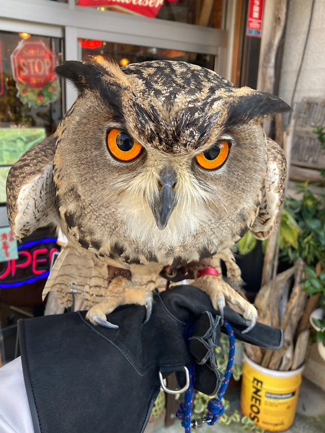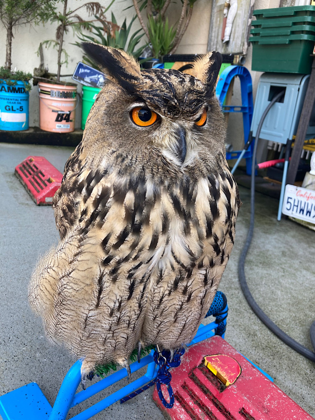 ①大型フクロウですが、大きな体格の割に性格は臆病な一面があり隅っこや狭い所を好みます♪ますます男前な顔に♡